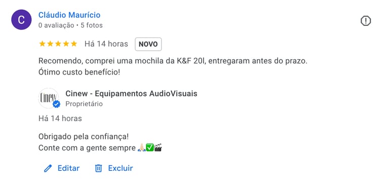 Recomendo, comprei uma mochila da K&F 20l, entregaram antes do prazo.